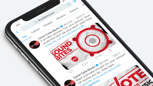 A social media-driven campaign, Coca-Cola Soundbites, encouraged students across colleges nationwide to vote for their favorite campus to win an exclusive, live music experience featuring the upcoming artist, Marc E. Bassy with a special VIP meet and greet opportunity. The execution involved both digital and print platforms.