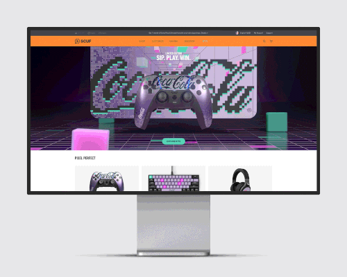 SCUF Gaming is a $100+M company, recently acquired by Corsair, that sells high-performance customized gaming controllers and accessories for PC and consoles. SCUF is the global leader and innovator in esports, providing tactical gear for elite gamers for over 90% of the top professional players. The execution involved redesigning the UI and UX for product pages, builders, and check-out across desktop and mobile. Other responsibilities include social, digital, print, and experiential.